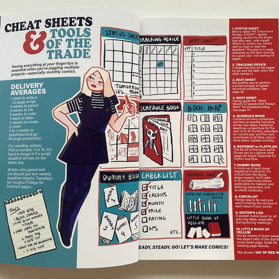 For instance, Bond says, when she was creating her newest work, Fast Times in Comic Book Editing, the book map helped guide her into starting a story sequence on the end pages—“so the action starts at the moment you open the book,” she says. Often, when you’re going through the process of creating and then editing a work, some material ends up hitting the cutting room floor. But, says Bond, you can sometimes find ways to use some of that “extra” material in unexpected ways that support your storytelling.