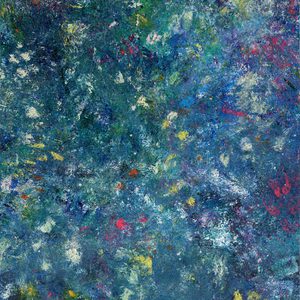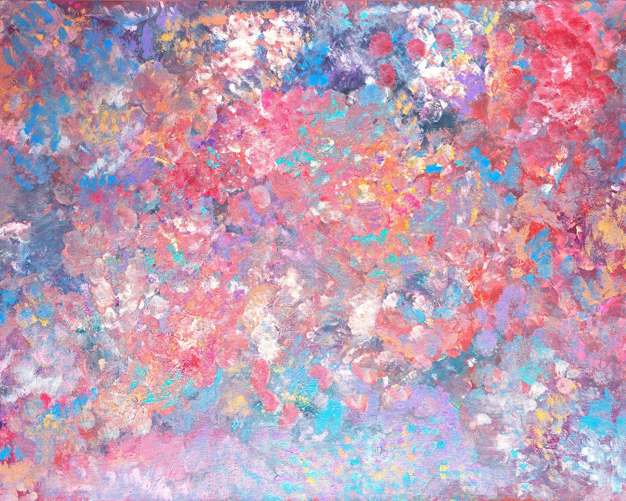 This painting was inspired by space. During a vestibular migraine all I can see is static with flashes of lights and various colors.”