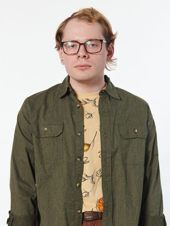 Late Victorian fashion and paintings are inspiration for An Overview on Phenomenal Nature, a collection from Daniel Grimm brimming with flowy textiles dyed with plant material and paired with organic prints and paintings. Grimm hopes Fashion Show attendees will see their work as art pieces rather than simply something on the runway. They also hope the collection will encourage people to consider the way they look at gender and push themselves to wear and make what makes them happy rather than what they are told are traditionally acceptable. “My collection is about my feelings on gender, having more masculine figures wearing traditionally masculine garments with feminine twists,” says Grimm. Currently a goldsmith apprentice at Diamond Cellar, Grimm plans to work toward being a designer goldsmith and graduate gemologist, but would love to start an animal sanctuary and provide fiber for local artists, as well as show their own fashion and jewelry work in exhibitions across the country.